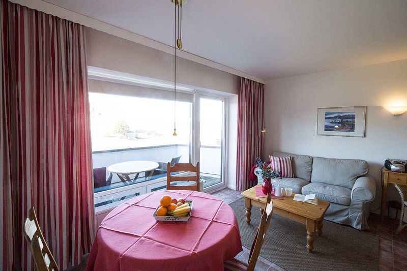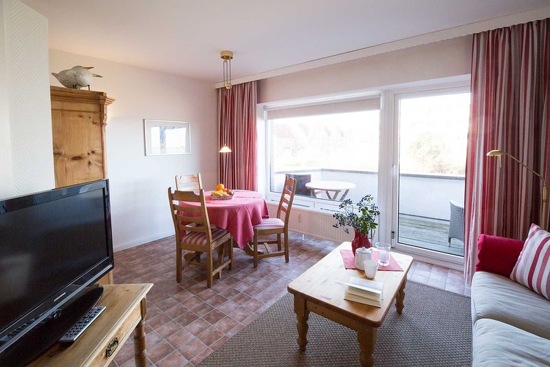 Die Wohnung 3 liegt in der ersten Etage im Ferienhaus Jungnamen Sand und zeigt Richtung Westen. Es finden 2 Personen auf 43 m² geschmackvoll eingerichteter Wohnfläche genügend Platz zum Entfalten.
