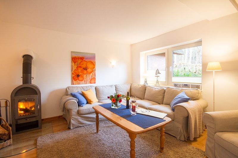 Ausstattung: Das Haus bietet Ihnen allen Komfort für bis zu 4 Personen mit Wohnzimmer, Küche, Bad, Gäste WC, zwei separaten Schlafzimmern und einem gemütlichen dänischen Ofen. Das Haus ist sehr liebevoll zum Teil mit antiken Möbeln eingerichtet und verfügt über einen großen Plasma-TV und Radio mit CD-Player. Die sehr großzügige Küche enthält einen Geschirrspüler und Backofen.